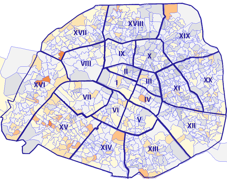 Survolez chaque arrondissement pour voir les résultats, et Cliquez dessus pour le détail