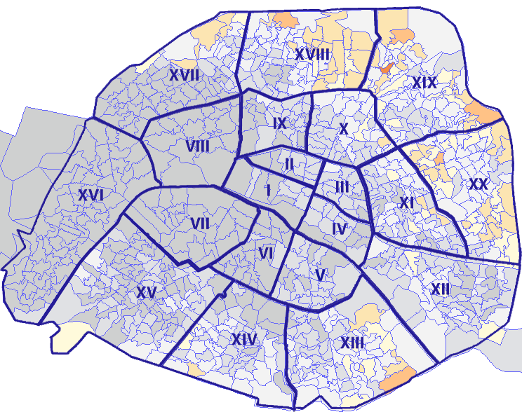 Survolez chaque arrondissement pour voir les résultats, et Cliquez dessus pour le détail