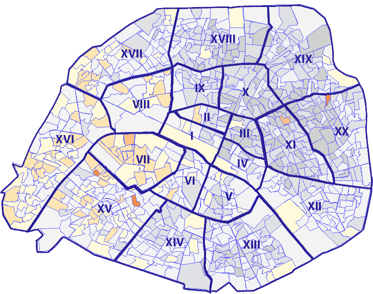 Survolez chaque arrondissement pour voir les résultats, et Cliquez dessus pour le détail