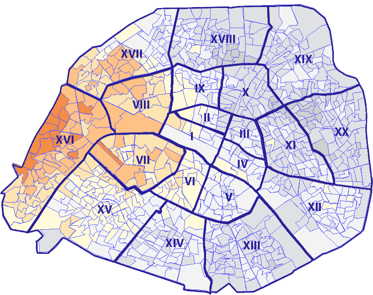 Survolez chaque arrondissement pour voir les résultats, et Cliquez dessus pour le détail