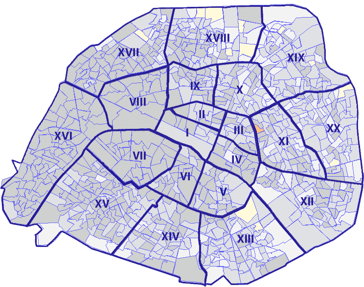 Survolez chaque arrondissement pour voir les résultats, et Cliquez dessus pour le détail