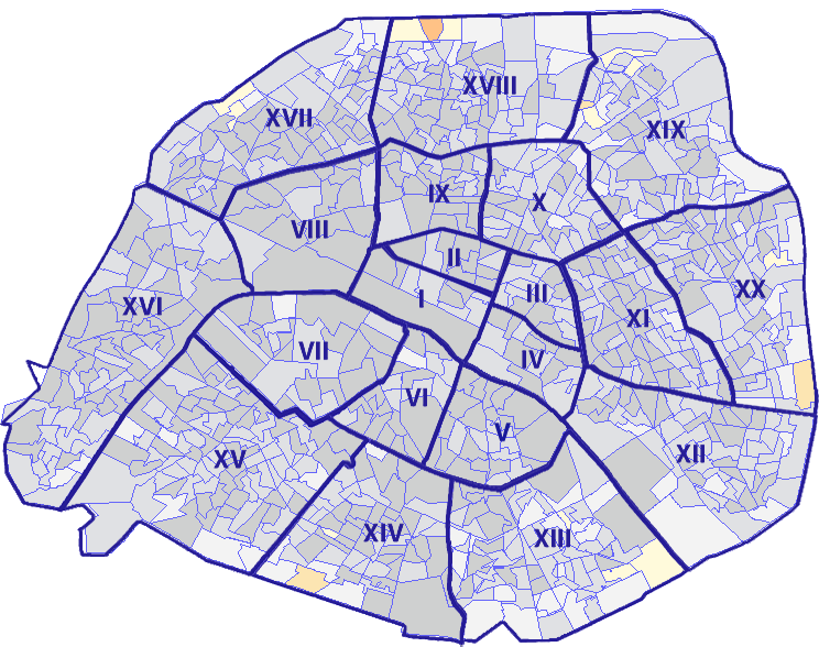 Survolez chaque arrondissement pour voir les résultats, et Cliquez dessus pour le détail
