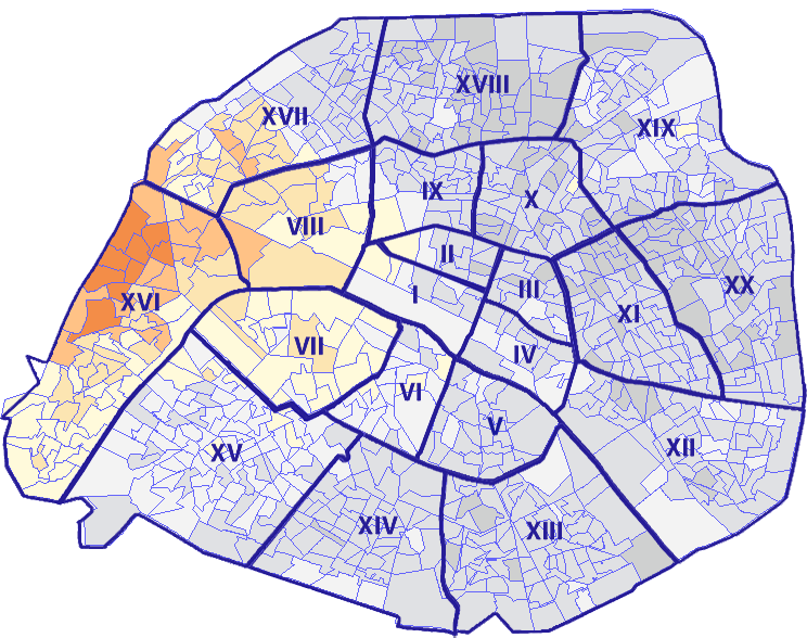 Survolez chaque arrondissement pour voir les résultats, et Cliquez dessus pour le détail