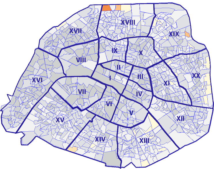 Survolez chaque arrondissement pour voir les résultats, et Cliquez dessus pour le détail