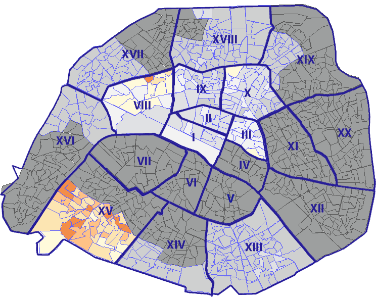 Survolez chaque arrondissement pour voir les résultats, et Cliquez dessus pour le détail