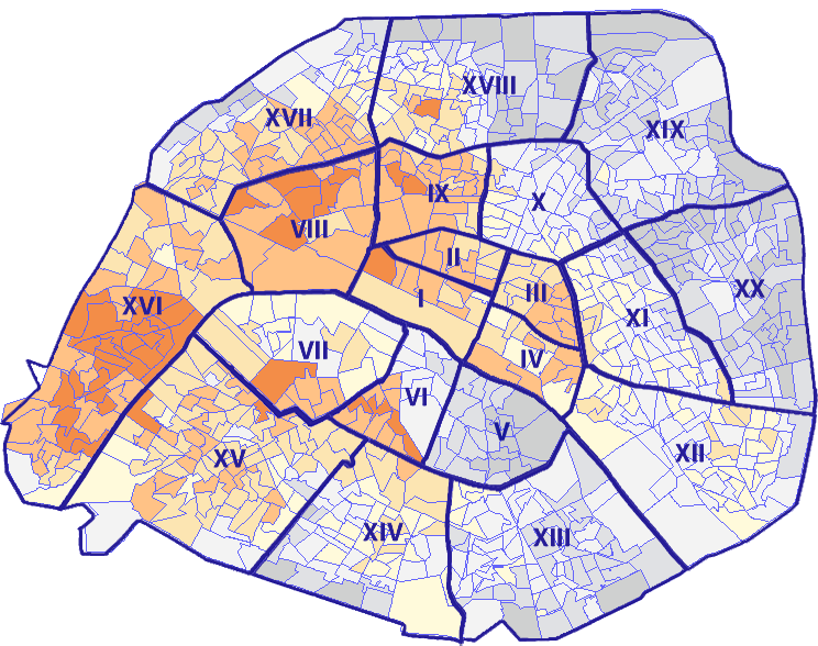 Survolez chaque arrondissement pour voir les résultats, et Cliquez dessus pour le détail