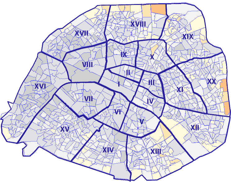 Survolez chaque arrondissement pour voir les résultats, et Cliquez dessus pour le détail