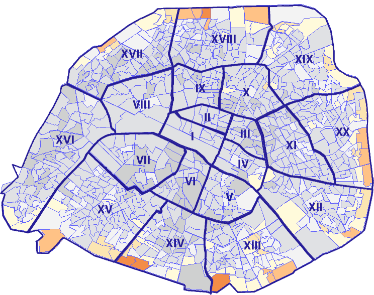 Survolez chaque arrondissement pour voir les résultats, et Cliquez dessus pour le détail