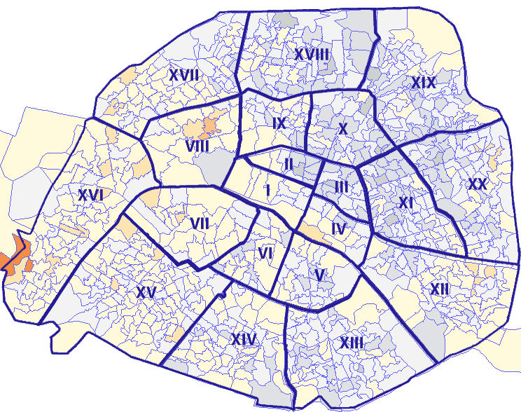 Survolez chaque arrondissement pour voir les résultats, et Cliquez dessus pour le détail