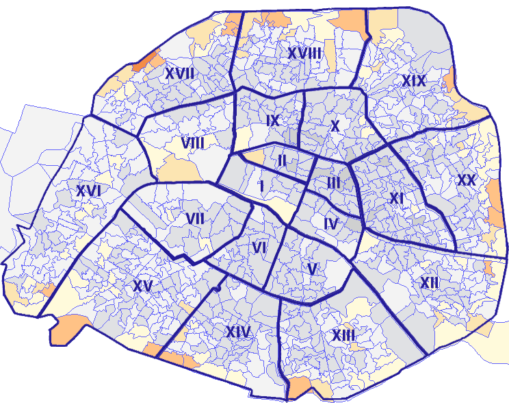 Survolez chaque arrondissement pour voir les résultats, et Cliquez dessus pour le détail