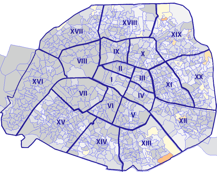 Survolez chaque arrondissement pour voir les résultats, et Cliquez dessus pour le détail