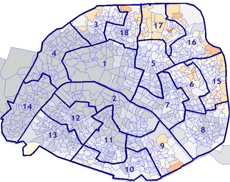 Survolez chaque arrondissement pour voir les résultats, et Cliquez dessus pour le détail