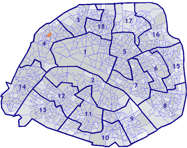 Survolez chaque arrondissement pour voir les résultats, et Cliquez dessus pour le détail