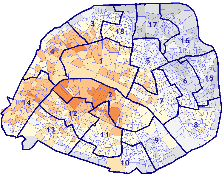 Survolez chaque arrondissement pour voir les résultats, et Cliquez dessus pour le détail