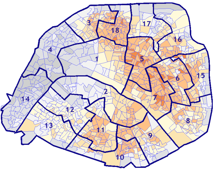 Survolez chaque arrondissement pour voir les résultats, et Cliquez dessus pour le détail