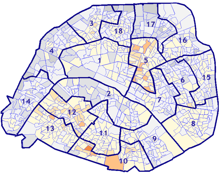 Survolez chaque arrondissement pour voir les résultats, et Cliquez dessus pour le détail