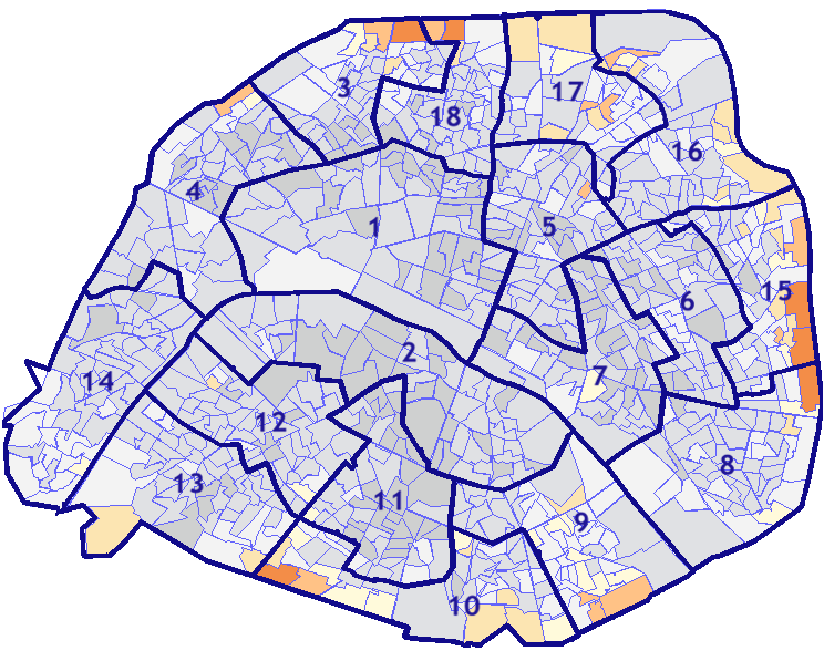 Survolez chaque arrondissement pour voir les résultats, et Cliquez dessus pour le détail