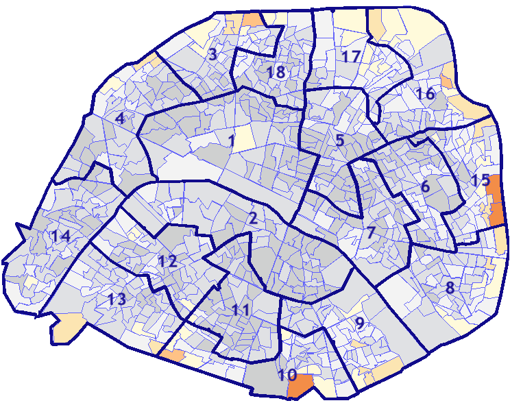 Survolez chaque arrondissement pour voir les résultats, et Cliquez dessus pour le détail