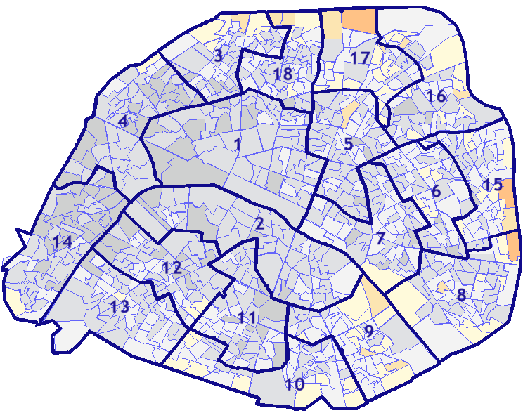 Survolez chaque arrondissement pour voir les résultats, et Cliquez dessus pour le détail