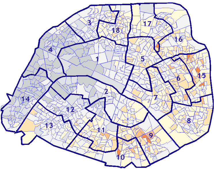 Survolez chaque arrondissement pour voir les résultats, et Cliquez dessus pour le détail