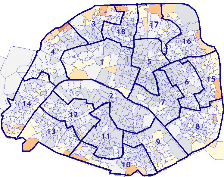 Survolez chaque arrondissement pour voir les résultats, et Cliquez dessus pour le détail