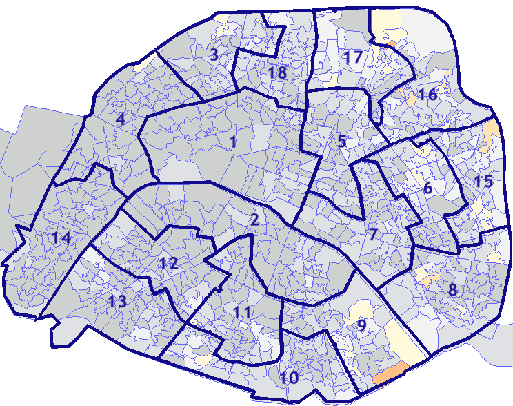 Survolez chaque arrondissement pour voir les résultats, et Cliquez dessus pour le détail