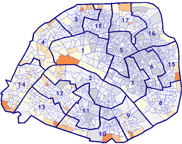 Survolez chaque arrondissement pour voir les résultats, et Cliquez dessus pour le détail