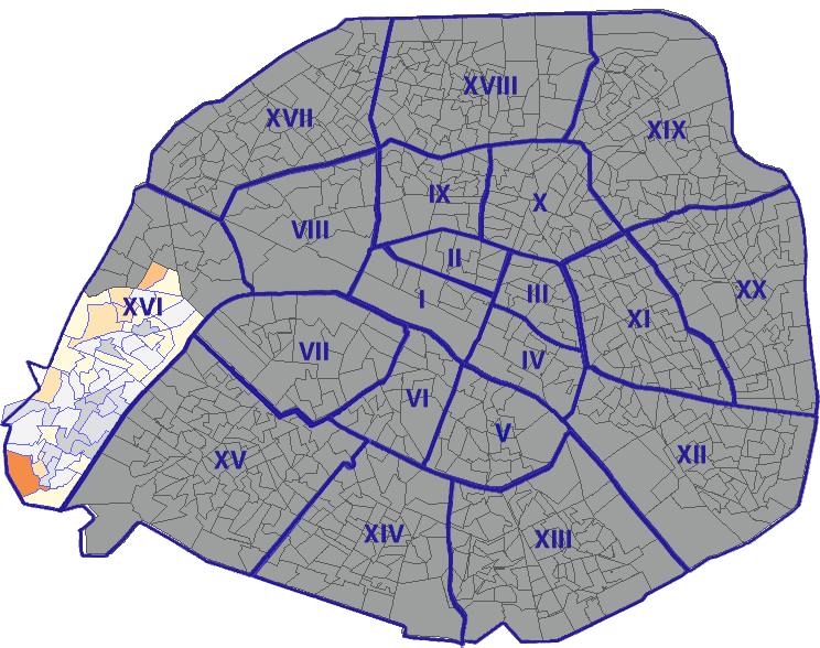 Survolez chaque arrondissement pour voir les résultats, et Cliquez dessus pour le détail