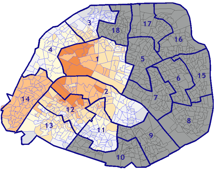 Survolez chaque arrondissement pour voir les résultats, et Cliquez dessus pour le détail